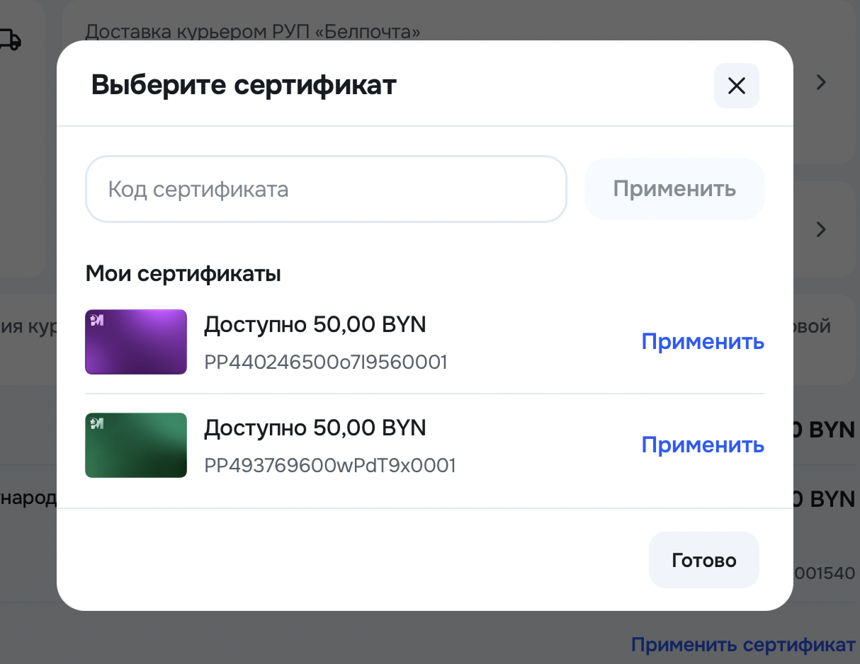 Заказ, для которого применен сертификат, возможно оплатить только способом оплаты «Картой онлайн».